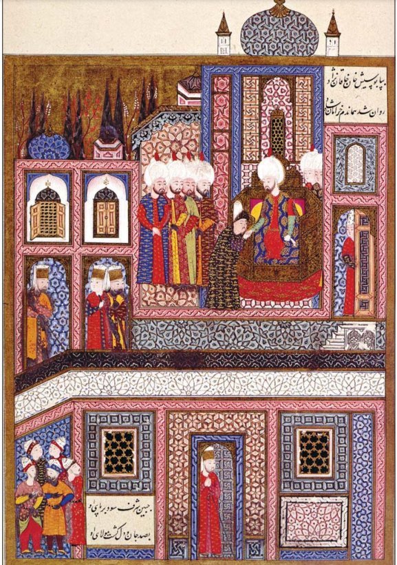 Сулейман Кануни принимает крымского хана Девлет Герая. Миниатюра «Сулейман-наме». Использована realnoevremya.ru иллюстрация из книги «История крымских татар»