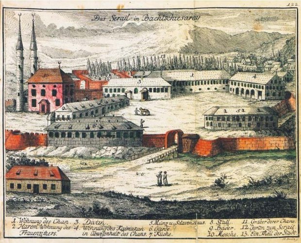Бахчисарайский дворец. Клееман, 1769. Использована realnoevremya.ru иллюстрация из книги «История крымских татар»