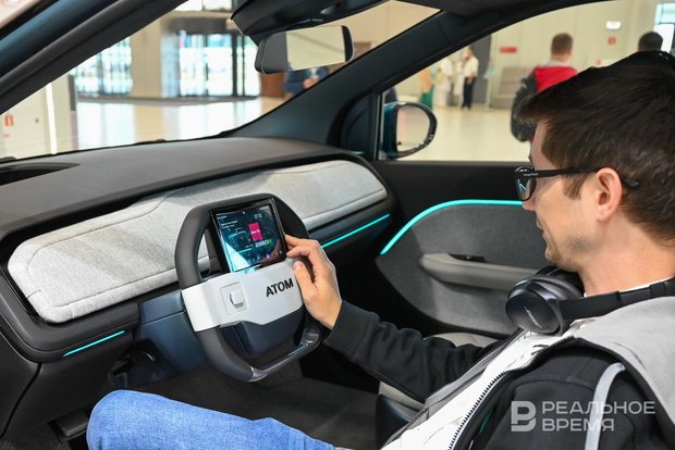 Показали и прототип российского электромобиля «Атом» — детище проекта АО «Кама» гендиректора КАМАЗа Сергея Когогина и бизнесмена Рубена Варданяна.