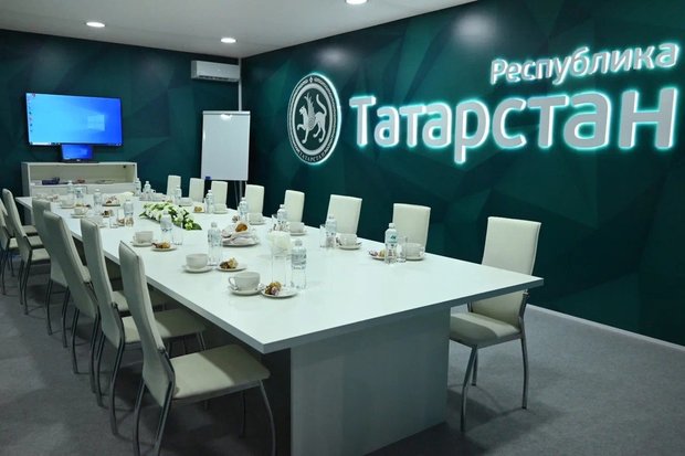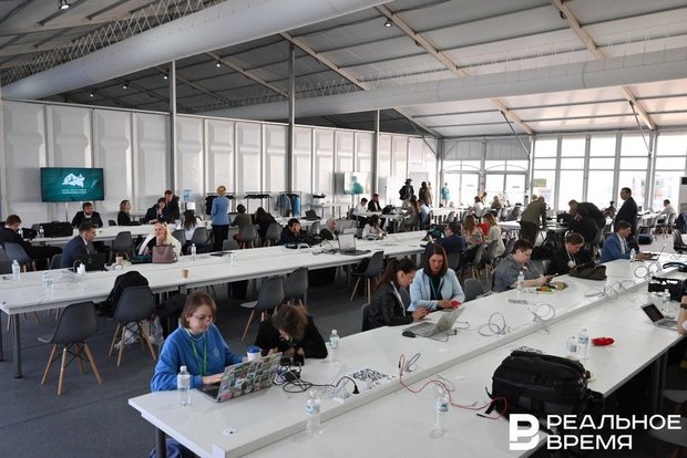 Медиацентр в этом году, после присвоения форуму федерального статуса, получил серьезное обновление. Теперь это не закуток около концертного зала Ильгама Шакирова, как в 2022-м, а огромный шатер с несколькими огороженными зонами и залом для пресс-конференций. Его площадь составляет 1,8 тысячи «квадратов».