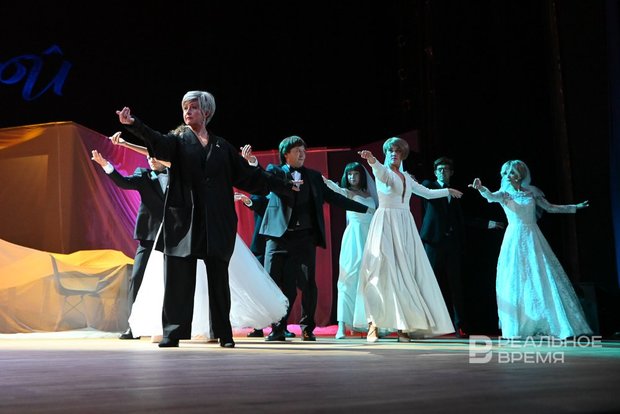 Кроме того, открывается постановка хитом «Туй күлмәге», с коллективного танца от хореографа Софьи Гуржиевой и бросания подвязок и букетов. Помимо основных героев, четырех пар, есть еще голос мудрости и регистраторши Васили. Лейсан Рахимова в этом образе смотрится очень чувственно, ничем не уступая молодым коллегам. Но самый ее звездный момент — выход с баяном с песней «Беренче мәхәббәт», которой, следуя зову сердца и надписи на стене, начинают подпевать зрители.