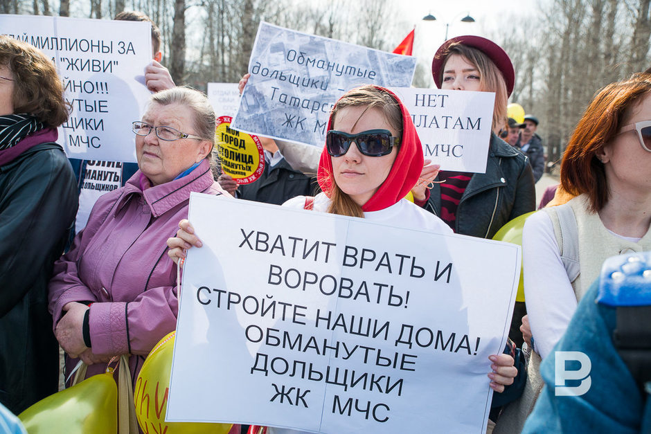 Сегодня в Казани прошел первый за долгое время санкционированный митинг, на котором собрались обманутые дольщики почти все жилых комплексов группы «ФОН». На этот раз протестующих городские власти отправили в сквер Тинчурина, где дольщики поделились друг с другом наболевшими проблемами и спели песню на мотив бессмертной музыкальной темы «Белорусского вокзала». На митинге побывал и корреспондент «Реального времени».