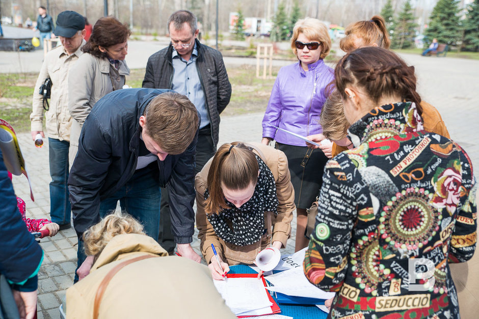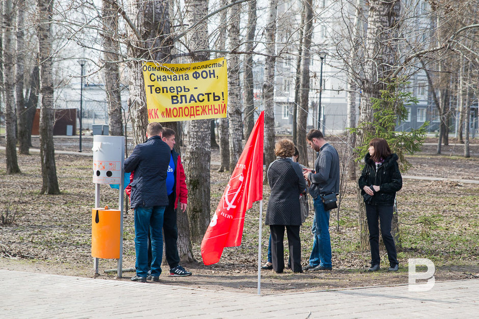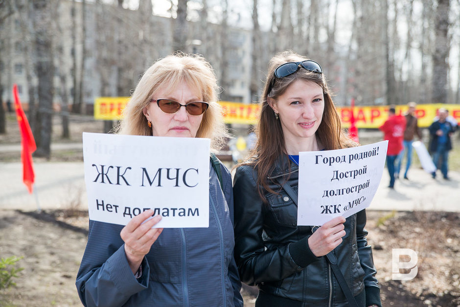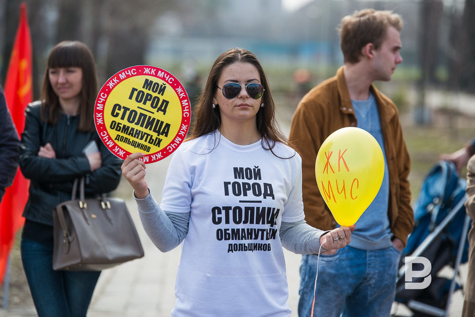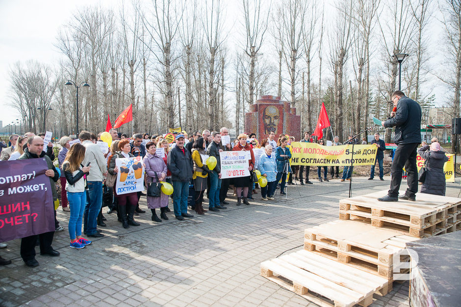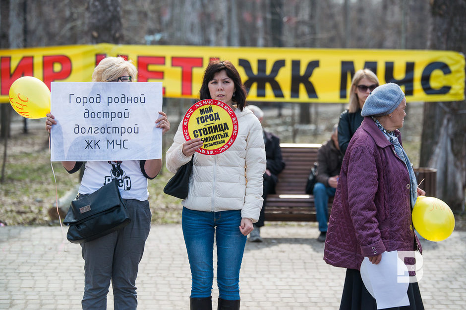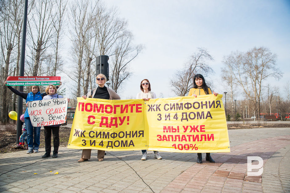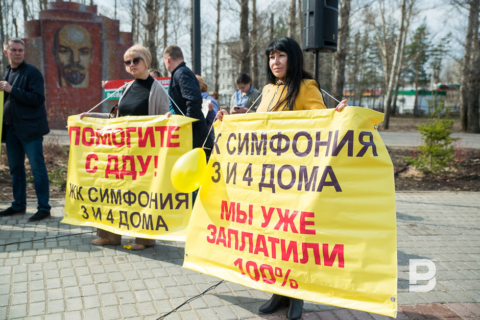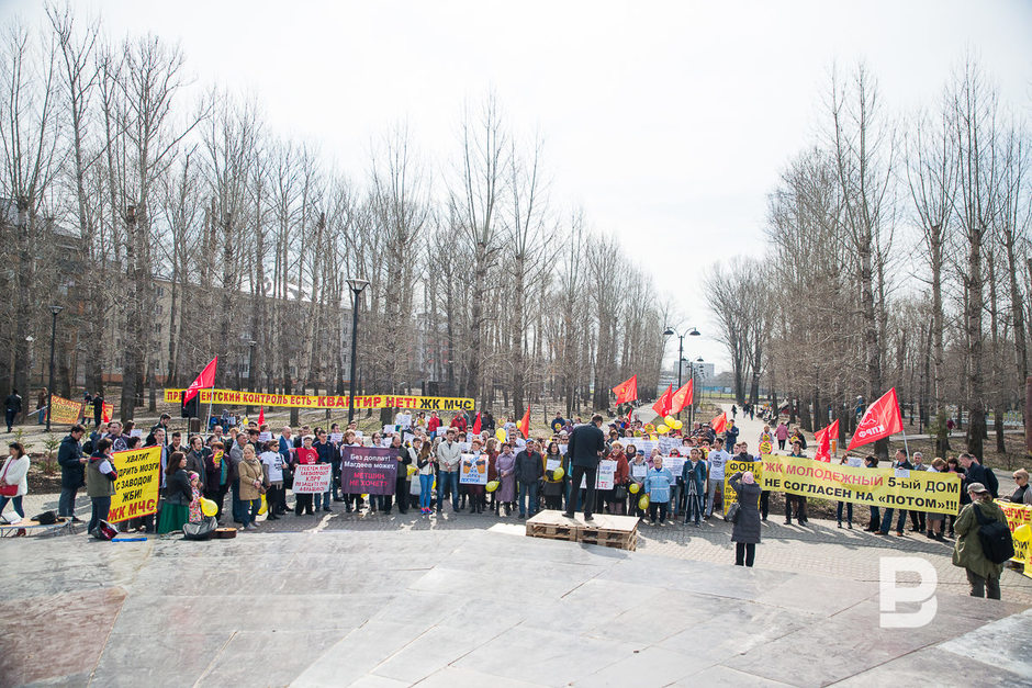 Несколько месяцев обманутые дольщики пытались согласовать акцию протеста на площади Свободы, однако исполком Казани оказался непреклонен. Поэтому впервые сегодня протестующие отправились подальше от делового центра — в сквер Тинчурина.