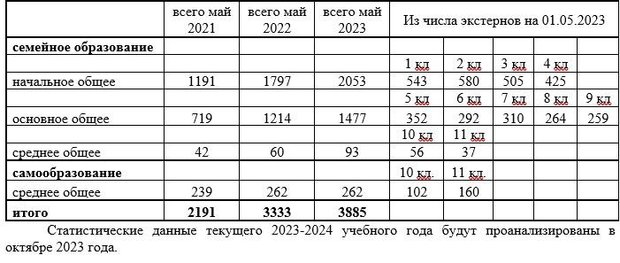 — По состоянию на май 2022/23 учебного года, согласно данным предоставленным муниципальными органами управления образованием общее число детей, осваивающих образовательные программы начального общего, основного общего и среднего общего образования в семейной форме и в форме самообразования, возросло и составляет 3 885 человек, что на 552 человека больш, по сравнению с аналогичным периодом 2022 года. Если сравнивать с 2021-м, то сразу на 1 694, — рассказали «Реальному времени» в Минобре Татарстана.