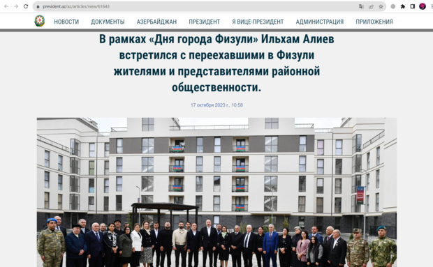- Президент Азербайджана Ильхам Алиев на встрече с общественностью Физулинского района в Карабахе заявил, что тема Нагорно-Карабахского конфликта окончательно закрыта.