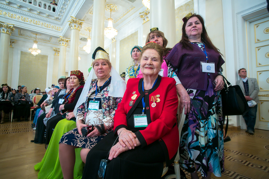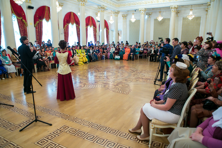 Пленарное заседание, которое прошло уже в зале театра, оказалось довольно официозным: большая часть спикеров сидела за длинным столом на сцене. Мужчин среди участников форума можно было посчитать на пальцах, видимо поэтому министру образования РТ Энгелю Фаттахову и председателю Всемирного конгресса татар Ринату Закирову достались лучшие места в середине президиумного стола. К слову, именно они и напомнили татарским женщинам об их материнской миссии. Фаттахов рассказал, как правительство республики готово помочь сохранять семейные очаги. Речь идет о законодательной инициативе Татарстана, по которой срок принятия решения о расторжении брака предлагается увеличить с 1 до 3 месяцев. В случае же, если у пары есть несовершеннолетний ребенок, для развода понадобится согласие обоих родителей.