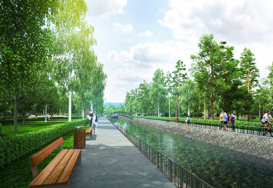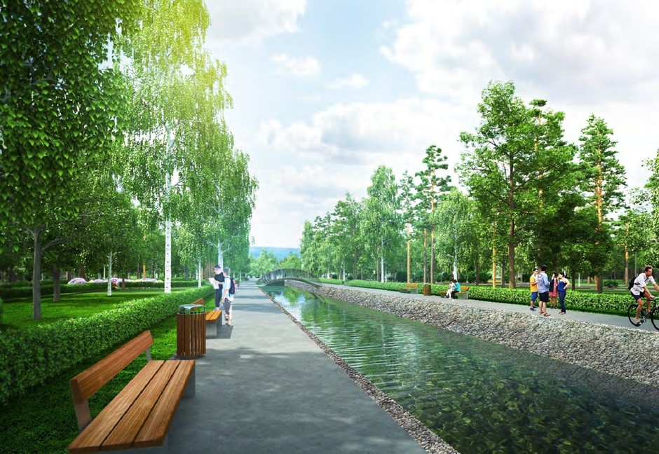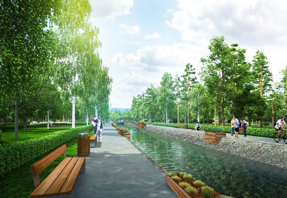 Что касается канала, сама чаша будет очищена, а для безопасности детей предлагается несколько вариантов: оставить канал без ограждений, сделать ограждения или установить навесные вазоны и по желанию установить или не устанавливать ограждения. Четвертый, самый дорогостоящий вариант — сделать каскадность, благодаря чему станет возможно пешком перейти канал и поплескаться в воде.