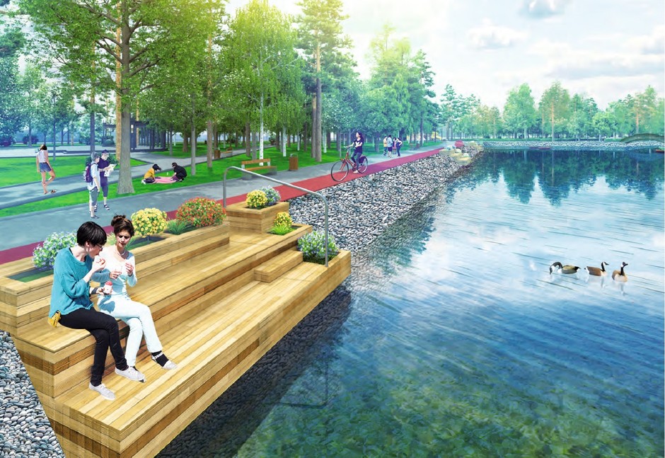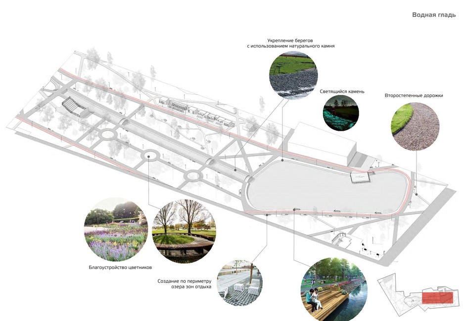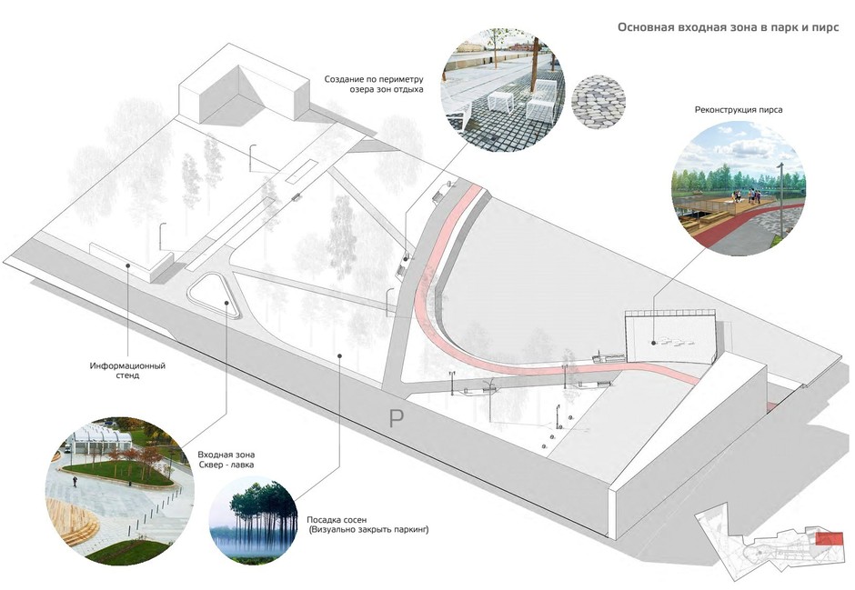 Собственно, предложенный план кардинально ни в чем не отличается от того, что хотели сделать во время утренних обходов делегации во главе с Наталией Фишман в парке. Так, пирс предлагают реконструировать, покрасить, установить входную лавку и сделать небольшой спуск к воде, где напрокат можно будет взять лодку. За ЦСК, где сейчас располагаются гаражи, по плану, вместо них появятся павильоны с небольшой зоной общепита, где можно будет перекусить или купить воды. На этой же территории будут расположены столики с уличными играми.
