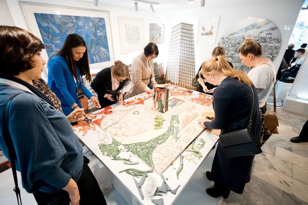 предоставлено для realnoevremya.ru пресс-службой СМУ-88 В течение трех дней форума на стенде работал известный московский скульптор Марат Наби — автор мозаик для Главного храма Вооруженных сил РФ, станций московского метро и ряда других знаковых объектов. Художник вместе с участниками форума создал мозаичный триптих — размышление о Казани будущего. Эскиз для панно Марат Наби подготовил с участием нейросетей, а первый элемент мозаики заложил мэр Казани Ильсур Метшин. По оценкам участников форума, стенд стал самой привлекательной и запоминающейся площадкой в этом году.
