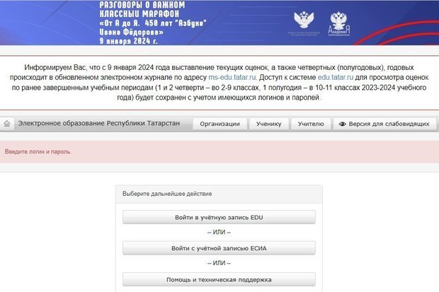 Портал ms-edu.tatar.ru, куда «переехало» с 2024 года «Электронное образование РТ», просто рухнул. скрин realnoevremya.ru портала edu.tatar.ru