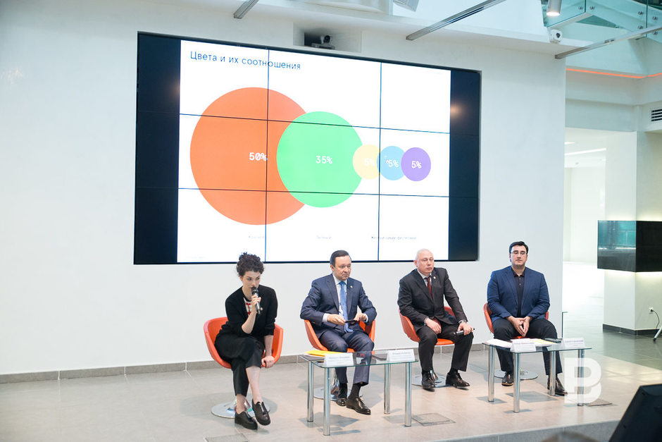 «Есть эмоциональная составляющая, есть функциональная. С точки зрения эмоциональной составляющей это очень хорошая работа. Она действительно радостная, это действительно место, которое приглашает посетителей, и мне кажется, если таким образом будет украшено здание «Казань Экспо», каждому захочется туда зайти, однако очень большие сложности есть в функциональной части, формировании дизайн-системы», — прокомментировала работу «Берега групп» помощник президента Наталия Фишман и добавила, что проект занял почетное второе место. В это время на экране появился и логотип, предложенный казанской командой, — он был выполнен в форме ярко-розового цветка тюльпана.