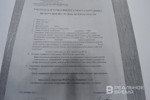 На время следствия пенсионерку сделали «внештатным сотрудником Федеральной службы безопасности». realnoevremya.ru/Василя Ширшова