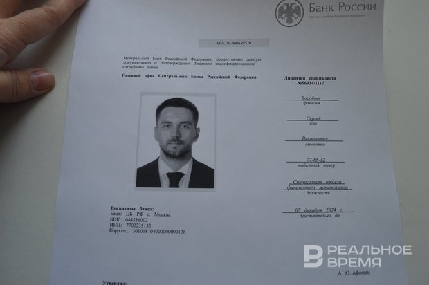 Сначала это был «старший специалист Центробанка» Сергей Воробьев, приславший для пущей убедительности нечто вроде «служебного удостоверения». realnoevremya.ru/Василя Ширшова