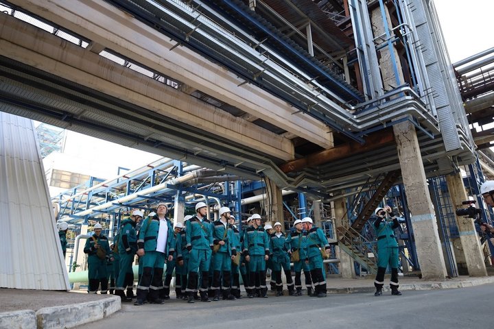 Главный эксперт службы главного технолога Павел Пирогов от лица трудового коллектива поблагодарил ватерполистов за спортивные успехи, и началась экскурсия по территории. Проехали завод поликарбонатов, как говорят, самый молодой из остальных, чья продукция использована в конструкции казанского стадиона «Ак Барс Арена» и столичной «ВТБ Арены». В цехе линейного полиэтилена чемпионскую делегацию поначалу не ждали, но когда это нас останавливало? «Мы «татары», нас и в российском водном поло не особенно любят», — констатировали нежданные гости и в процессе общения с заводчанами сумели так расположить к себе, что не встретившие их работники вышли провожать, заметно увеличив количество людей на групповой фотографии.