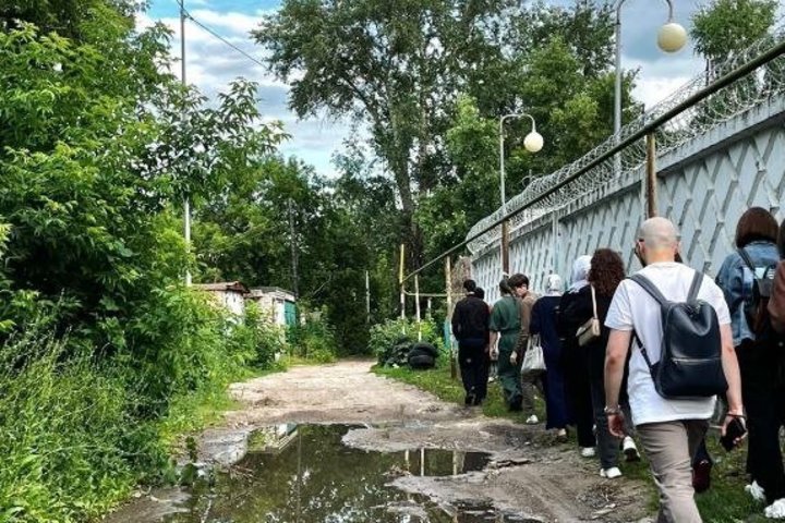 Нам надо перейти станцию Вахитово и оказаться в Плетенях. Слева — памятник постконструктивизма, 5-я горбольница. На картах даже начала XX века на ее месте — татарское кладбище. Идешь вдоль улицы Шарифа Камала — и видишь часть улицы Ирек (Свободы). Она начинается еще в той части слободы, а упирается в СИЗО-2. В Плетеневском изоляторе сидели татарские писатели, а еще из него выходит герой фильма «Мулла» Рамиль Фазлиев. Несколько лет назад здесь стояли разрушенные ворота с надписью «1950».