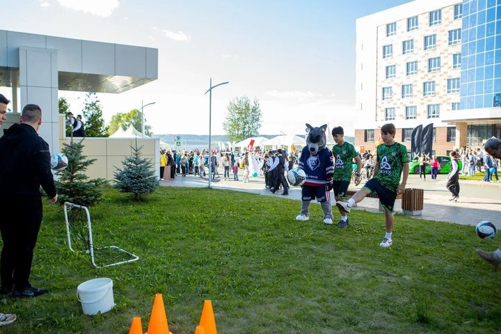 По инициативе «Нижнекамскнефтехима» на праздник приехали юноши-футболисты «Нефтехимика» — все желающие могли научиться фирменным трюкам и поучаствовать в мастер-классах.