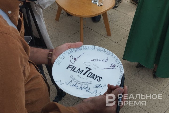 В Казани стартовал шестой международный проект «Кино за 7 дней», на этот раз — с участниками всех стран БРИКС. Министр культуры РТ Ирада Аюпова и генеральный продюсер проекта Станислав Ершов разбили тарелку, на которой расписались все участники и организаторы.