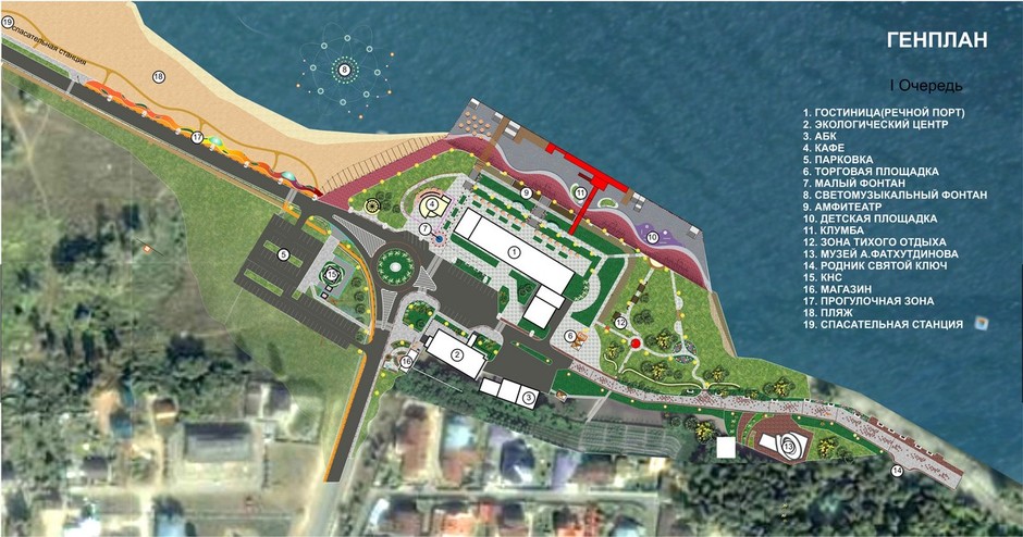 На нижней площадке набережной появится так называемая зона тихого отдыха. Еще один объект — амфитеатр с трибунами на 300 посадочных мест. Будет здесь и детская площадка, и автостоянка на 130 мест, и прогулочная аллея с разноцветной брусчаткой, а также благоустроенный пляж (как с платными, так и с бесплатными участками), площадка для пляжного волейбола, кафе, рестораны. Причем каждый элемент набережной будет иметь свое цветовое решение. Но лейтмотивом станет все-таки красный, соответствуя названию поселка — Красный Ключ.