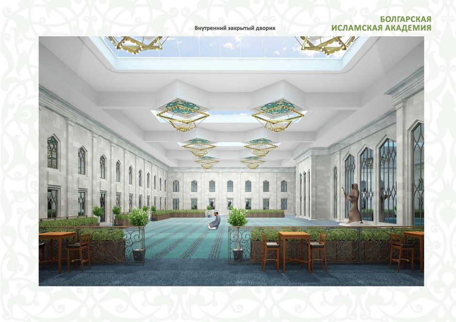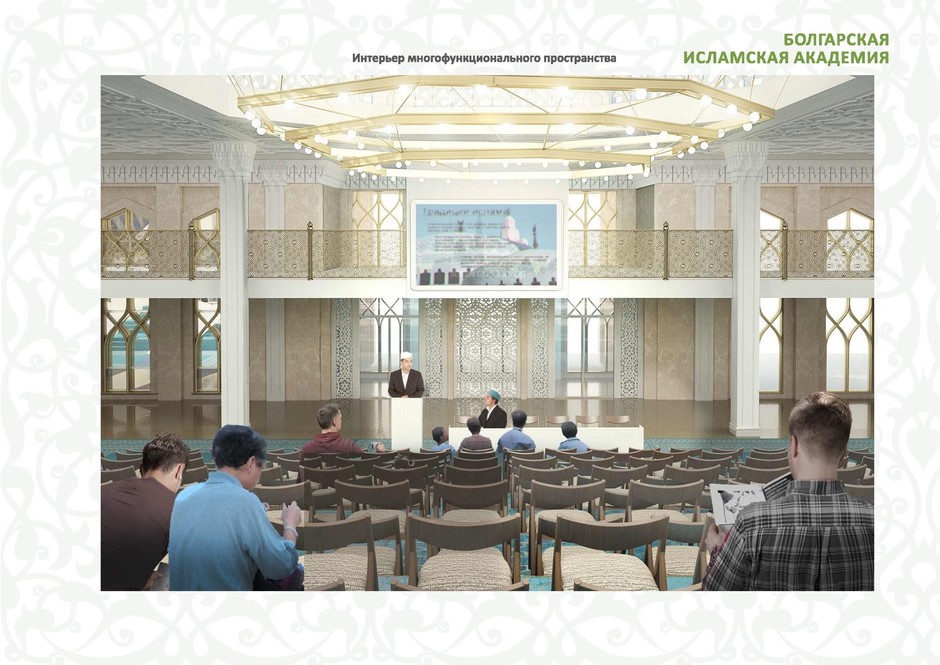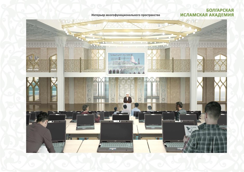 Сегодня журналистам презентовали проект проект здания Болгарской исламской академии и даже показали его интерьер. Оказалось, что в здании площадью 12 тыс. кв. м будет и античный амфитеатр, и библиотека, и даже небольшой спортзал. Первых студентов академия должна принять уже в сентябре следующего года, поэтому параллельно со строительством уже ведется разработка учебных программ и поиск преподавателей. Корреспондент «Реального времени» побывал на пресс-конференции и выяснил, что обучение в исламском вузе может быть бесплатным.