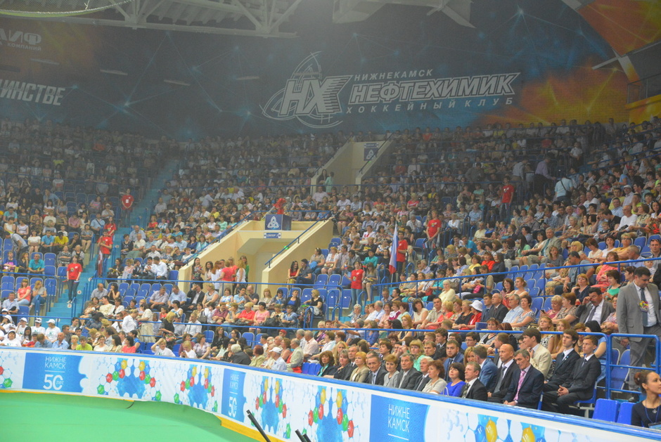 У входа в ледовый дворец «Нижнекамскнефтехима» в этот день было как никогда многолюдно, даже несмотря на жару. Так много людей здесь можно встретить разве что тогда, когда играет местная хоккейная команда «Нефтехимик».