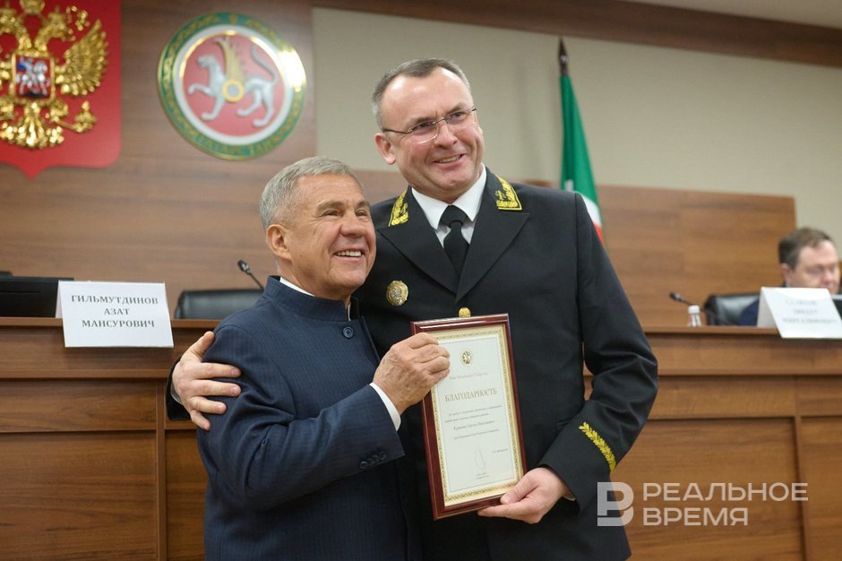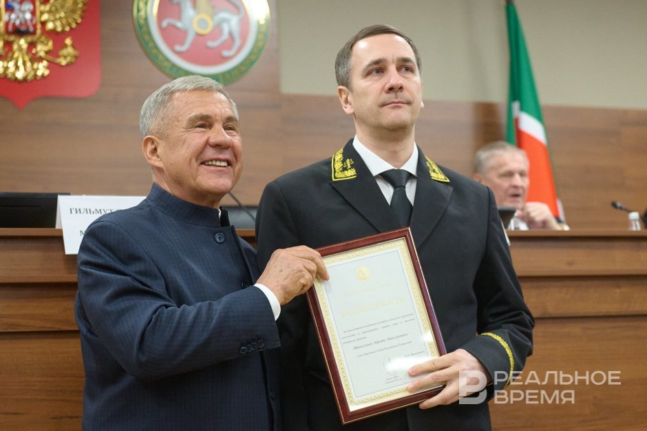 В финале открытой части заседания Рустам Минниханов вручил республиканские награды. Медали ордена «За заслуги перед РТ» удостоен председатель Приволжского райсуда Казани Ринат Сафин. Медалями «За доблестный труд» награждены председатель Советского суда Казани Лилия Гиниятуллина и Ринат Тохватуллин, замначальника отдела по противодействию коррупции управления Судебного департамента в РТ. Благодарности от раиса республики получили судьи Верховного суда РТ Сергей Куранов и Айрат Миннуллин.