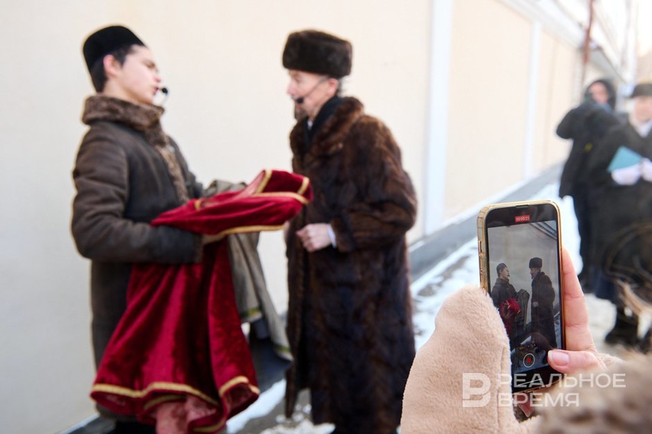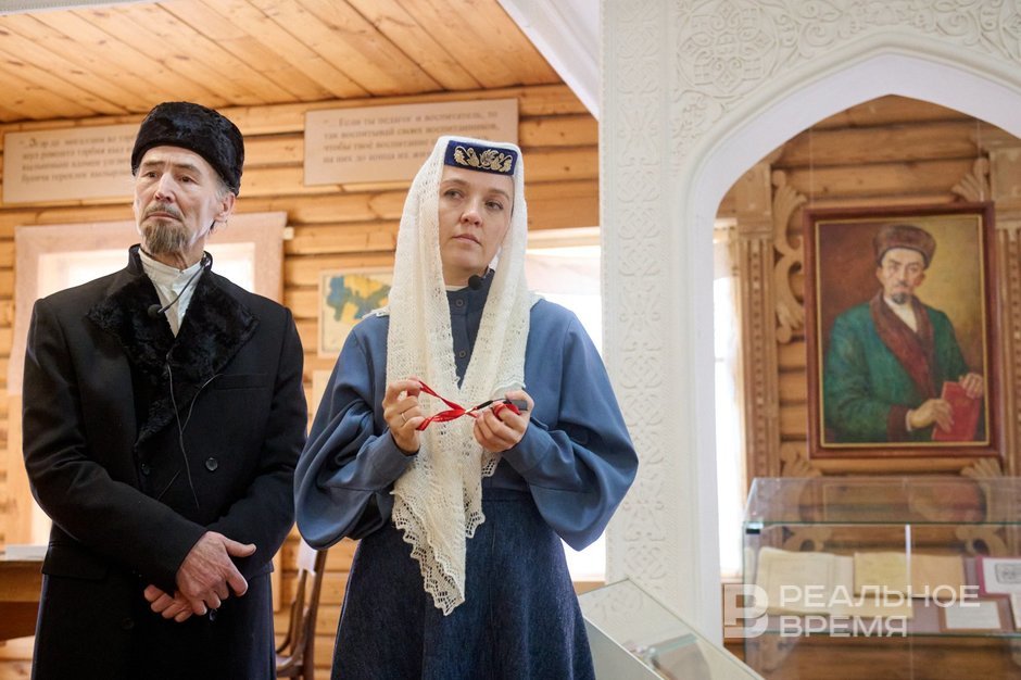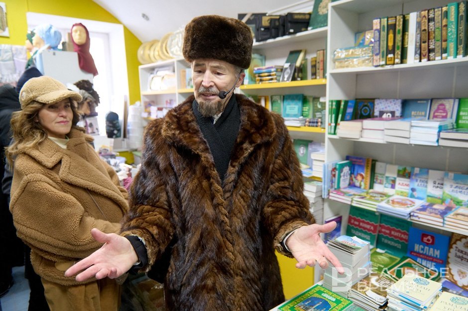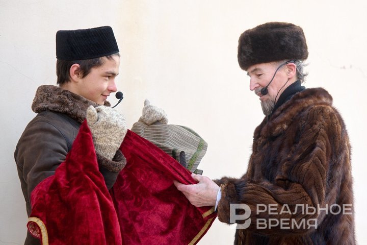 А вот Насыри в одном из книжных магазинов рассказывает, как не добившись разрешения издавать газету, стал выпускать календари. Сейчас они тоже выходят, причем только в этой торговой точке корреспондент насчитал четыре варианта. Но составляют их уже с более религиозным уклоном. Между тем шакирды погружаются в перечисление учебников Насыри и сообщают, что в будущем его назвали бы позитивистом. А у Галеевской мечети поясняют: это значит, что Насыри опирался на опыт научного познания. И разыгрывают сценку, где показывают, что, вообще-то, ученики от него в восторге, ведь он служит славному делу образования и науки.