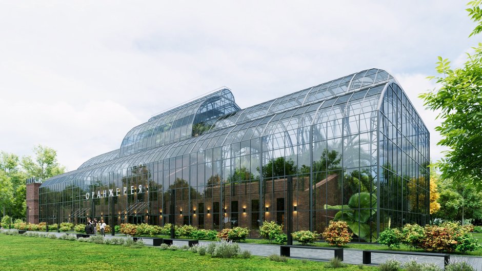Учитывая ценность редких видов растений, сохранение самого здания оранжереи, запас высоты «на вырост» — мы предложили заключить все это наследие под стеклянный «колпак». Стеклянная оболочка станет не только бережным контейнером, но и интересным архитектурным объектом. Проектом предусмотрен снос всех строений, которые в разные годы стихийно пристраивались к памятнику архитектуры, оставляя только то, что является предметом охраны, в структуре оранжереи появятся помещения для селекции, лектории, лаборатории.