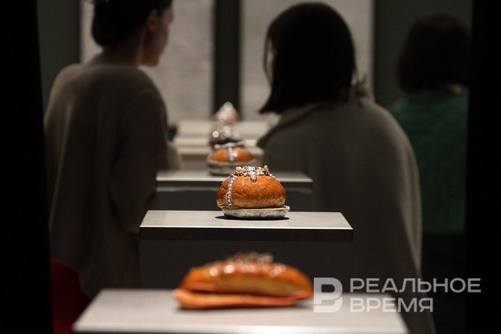 Пространство ES Gallery небольшое, поэтому разместить 25 работ — задача со звездочкой. Но у кураторов получилось. Весь зал поделили на две части прямоугольные тумбы, на которых выставлены работы Юлии Корбут из серии «О грехах, а не о трагедиях». Это обрамленные украшениями хлебобулочные изделия. Несколько таких «булочек» растянулось вдоль всей галереи, а некоторые гости без стеснения ставили рядом свою еду. Съедобную и не представляющую ценности с точки зрения искусства. Кстати, более масштабные работы Юлии из серии «Шкатулки, скрывающие стыд» представлены на выставке «Наследники» в Присутственных местах.