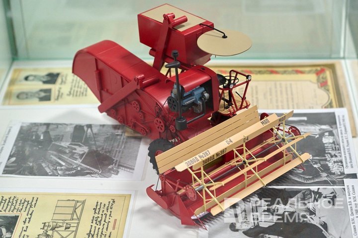 — Но самое интересное, когда мы первыми в стране начали выпускать самоходный комбайн, начались испытания на полях с участием нашей техники, других предприятий и американских комбайнов. Так вот, мы в конкурсе победили, потому что у нас был свой самолет. Когда комбайн ломался, запчасти на По-2 быстро поставляли, он мог сесть на любую ровную поверхность. Звонили на завод, говорили какие детали нужны, самолет вылетал, комбайн ремонтировали, и так мы одержали победу, — рассказал заведующий музеем.