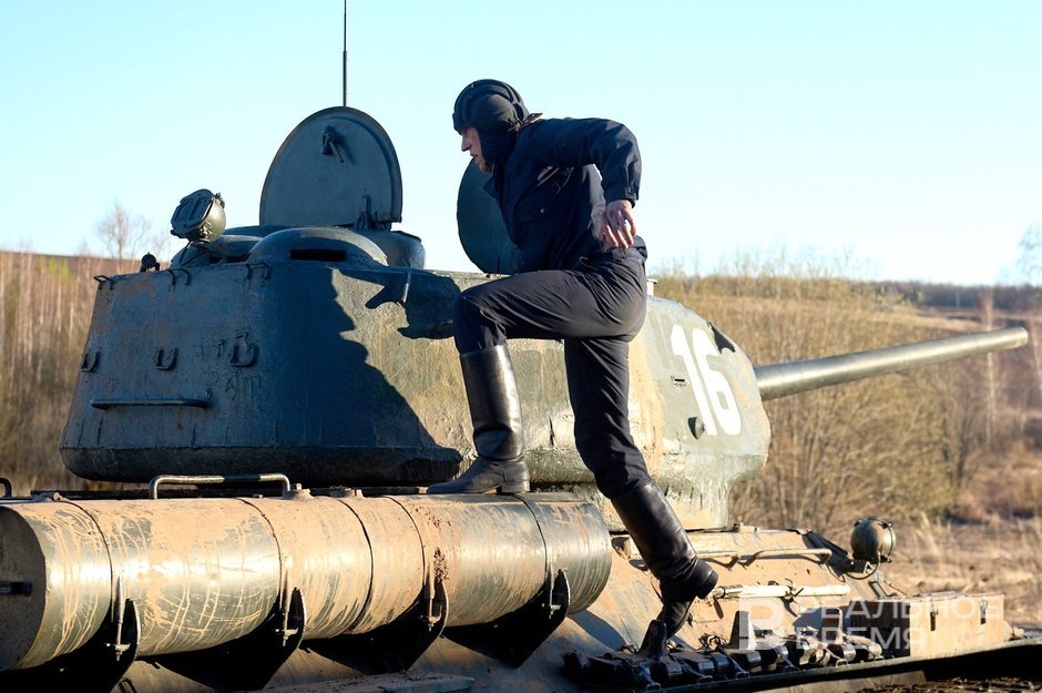 Как признался актер, со стальным напарником по съемкам — танком Т-34-85 сроднился буквально в первые полчаса общения.