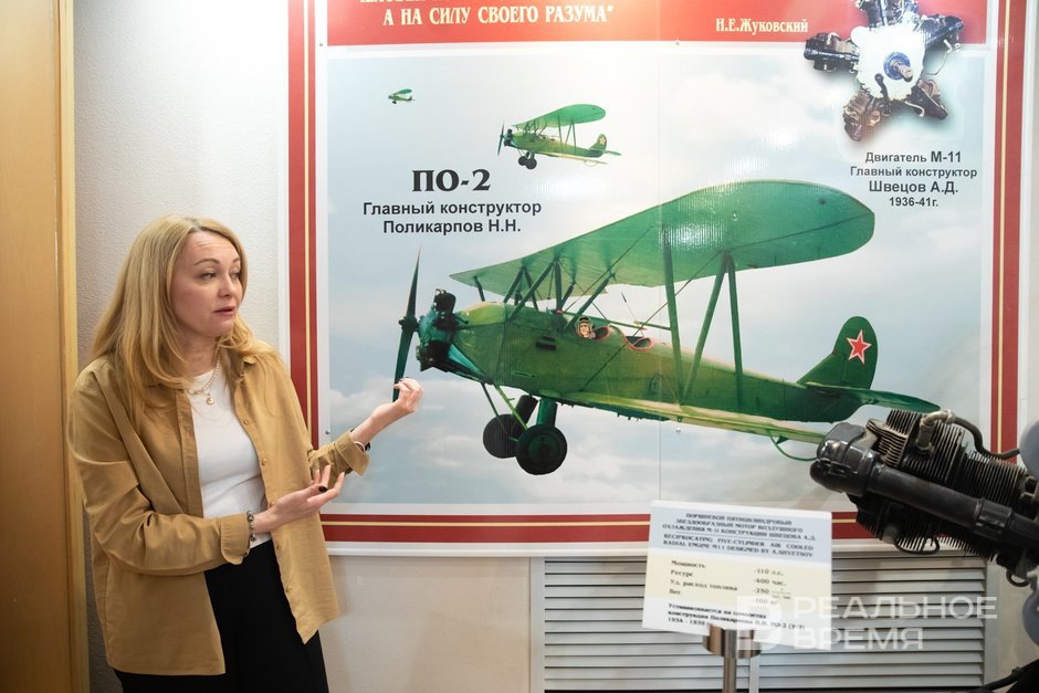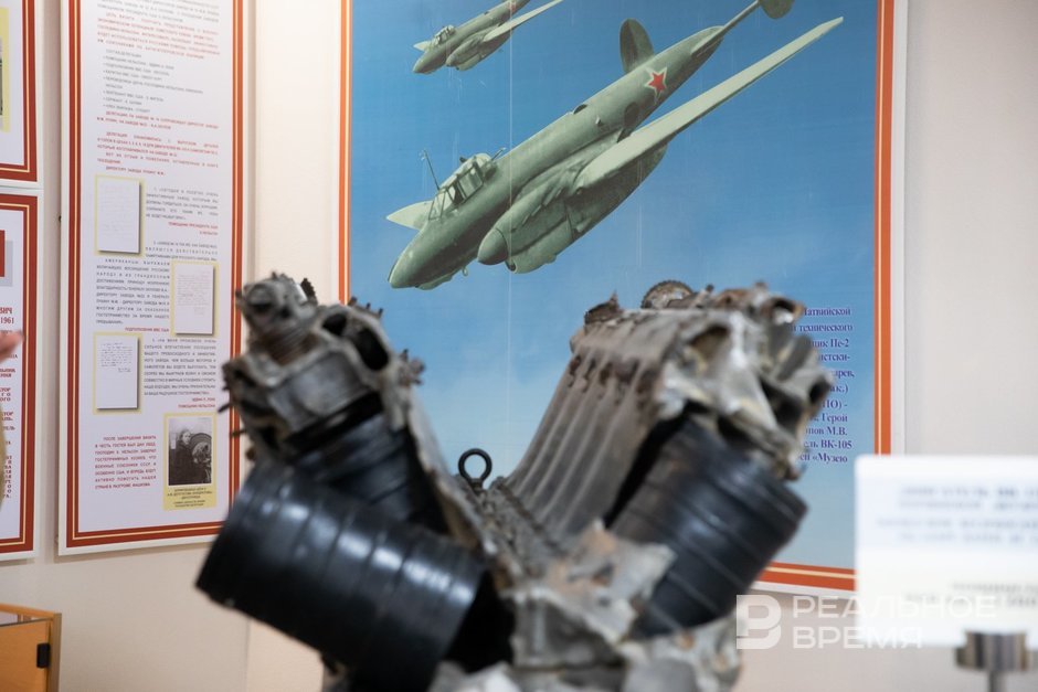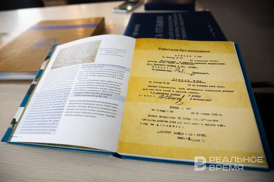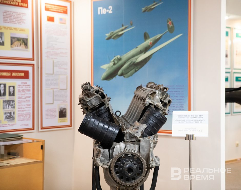 — В тылу тоже шло сражение не на жизнь, а на смерть. Фронту требовались снаряды, танки, самолеты… Рабочих рук катастрофически не хватало, поэтому к станкам вставали старики, женщины, рано повзрослевшие дети. Труд стал тем оружием, которым в тылу боролись с захватчиками. Осенью 41-го на заводе появилось такое понятие, как «фронтовая бригада». Оно выражало основное в жизни тружеников тыла — работать для фронта, для победы. Количество таких бригад постоянно росло. Осенью 42-го их было 39, а в 1945 году — 347. Результатом самоотверженного труда моторостроителей были двигатели. Более 15 тысяч моторов ВК-105 к боевым самолетам выпустили заводчане за годы войны, — рассказывает заведующая музеем КМПО Гузель Багаутдинова.