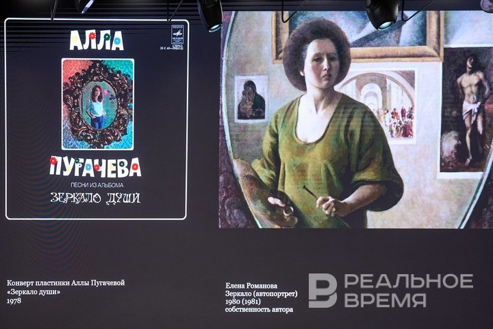 В этих мотивах уже нет внешнего мира. Только внутренний. Причем он не просто внутренний — он отраженный, искаженный, утопленный в зеркало, в холст, в шкаф. Художница Елена Романова писала автопортрет, сидя напротив зеркального шкафа. Но в этом отражении — не только она. Вокруг висят репродукции. В них — переклички: арка Рафаэля и вырез кофты. Моделировка лица — и лицо святого Себастьяна. «Она себя буквально погружает и растворяет в этом воображаемом пространстве культуры. Причем культуры мировой», — добавил Светляков. Похожее — на обложке альбома Аллы Пугачевой «Зеркало души». «Тема зеркала навязчива», — сказал спикер.