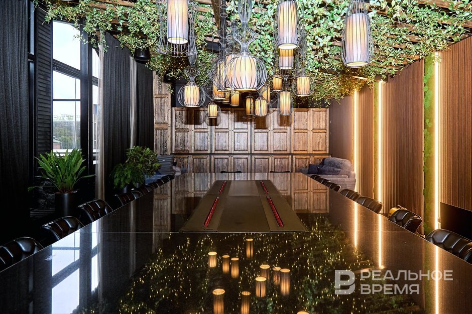 Отдельное предложение — разнообразные шоу от шефа: баранья нога фламбе, подача брискета, ростбифа, филе семги в соли. Шеф Булат Сахапов покажет все свое мастерство и умение, а его харизма и обаяние станут идеальной приправой к торжественному ужину. Кстати, можно заказать еще и мастер-класс от шеф-повара — к примеру, если вам нужно чем-то занять гостей на время сбора.