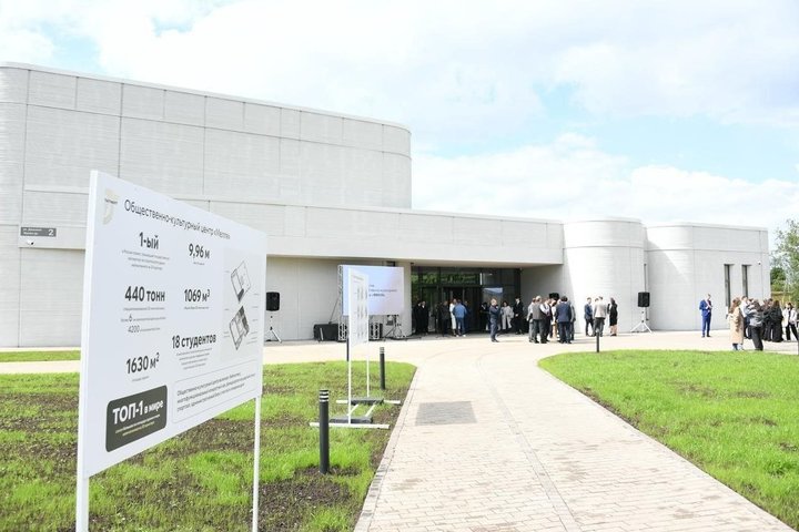 - В селе Мальбагуш Азнакаевского района Татарстана открыли общественно-культурный центр «Мелля» — самое высокое в России здание, напечатанное на 3D-принтере. Его высота составляет 10,1 метра. Проект реализовали студенты Альметьевского политеха. Раис Татарстана Рустам Минниханов высоко оценил комплекс, подчеркнув, что он станет точкой притяжения для всех жителей.