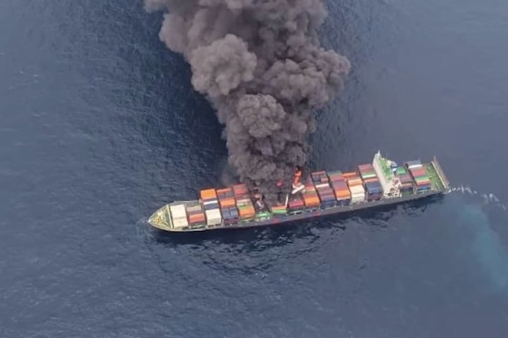 - Контейнеровоз Wan Hai 503, который горит у берегов Индии уже третий день, не удается потушить, сообщает береговая охрана. Судно, перевозившее опасные грузы, содержит около 2 тыс. тонн мазута и 240 тонн дизельного топлива, что создает риск дальнейших возгораний. Экипаж из 18 человек был эвакуирован, пятеро из них госпитализированы с ожогами.