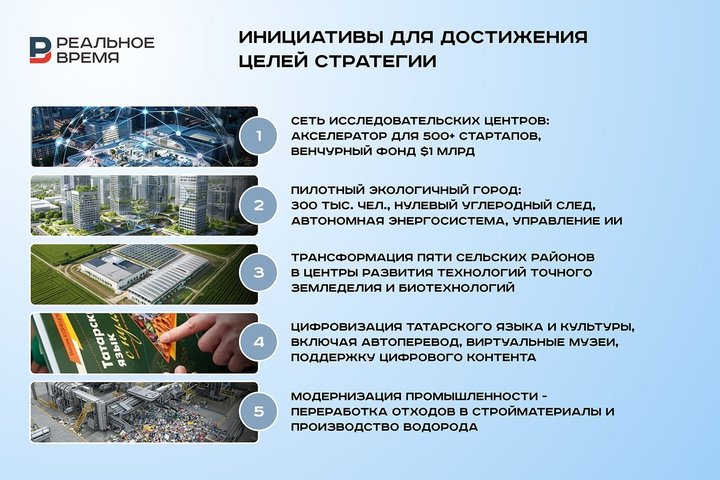 Особая роль отводится развитию высшего образования как системообразующего элемента стратегии. Ключевая цель — создание трех признанных на международном уровне университетских кластеров (Казань, Иннополис, Набережные Челны) и позиционирование республики как центра трансфера знаний в Евразии.
