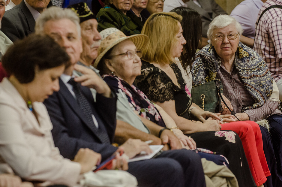 — Успейте написать ваши самые сильные произведения о нации. Самая мало изученная и мало освещенная тема — это история татар, потеря суверенности, борьба за независимость на протяжении 5-и столетий и ставшие жертвами в этой борьбе Кучемхан, Батырша, Кул Шариф, Сююмбике — нужно написать о них сильные романы. Второе — это история ссылок. От Салехарда до Сахалина были те, кого сослали вместе с семьями. Они еще живы, и в ссылке татары старались остаться собой. Третья тема — насильственные крещения. Что у нас есть кроме «Зулейхи» про крещения? Если бы у нас была национальная идеология, татарская женщина Гузель Яхина не написала бы произведение «Зулейха открывает глаза» и наши татары не приняли бы его, потому что когда есть национальная идеология, человек, который выжил, отказавшись от нации, веры и продав тело, не может быть главным героем, — эти слова зал встретил бурными овациями.