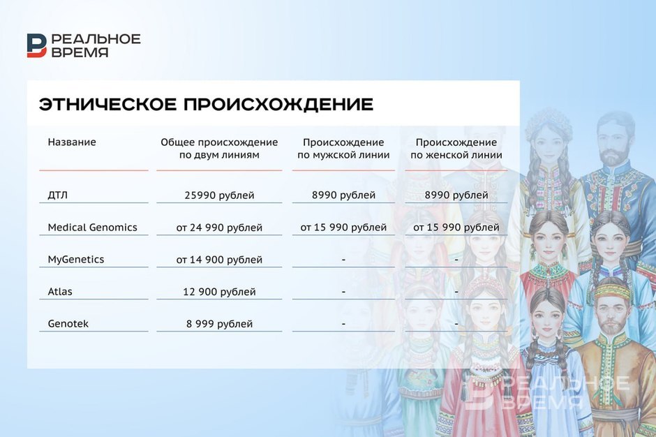 В тесте на этническое происхождение будет описание гаплогруппы: у каких национальностей больший процент носительства, история ее возникновения и пути миграции, распространения, описание культуры племен, проживавших на этих землях много лет назад. Это исследование охватывает 2—10 тыс. лет. В заключении также будут указаны известные личности древности и современности. Точность теста составляет 99,99%, заверили нас в клинике.