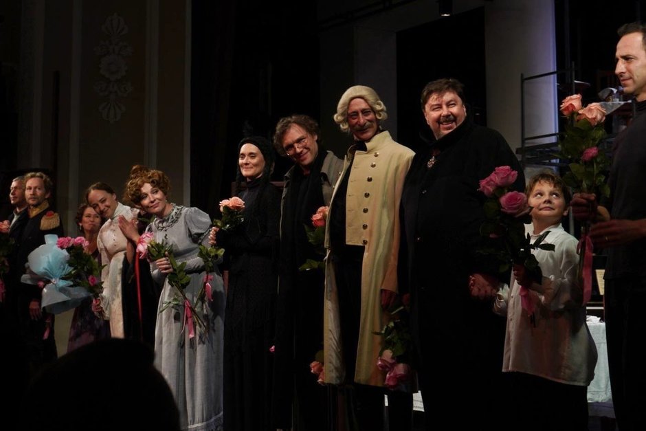 На следующей неделе, 3 октября, фестиваль продолжится постановкой самих качаловцев — это «Свои люди» (16+) по Островскому. Здесь, в отличие от москвичей, у каждого героя — свое амплуа, функция. Образец традиционализма в современных условиях, причем пьесу Славутский ставил и в родном театре еще в 1996 году, и даже в Македонии.