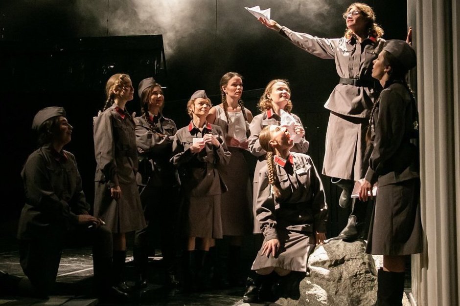 Следом будут «А зори здесь тихие»/«А зоры тут ціхія» (12+) по Борису Васильеву от режиссера Дмитрия Акимова. Спектакль везет Национальный академический театр им. Янки Купалы из Минска, куда Качаловский регулярно ездит на гастроли. Спектакль идет на белорусском языке, сделан в «клиповой» манере, при этом в одной из сцен актрисы рассказывают истории из жизни своих семей.