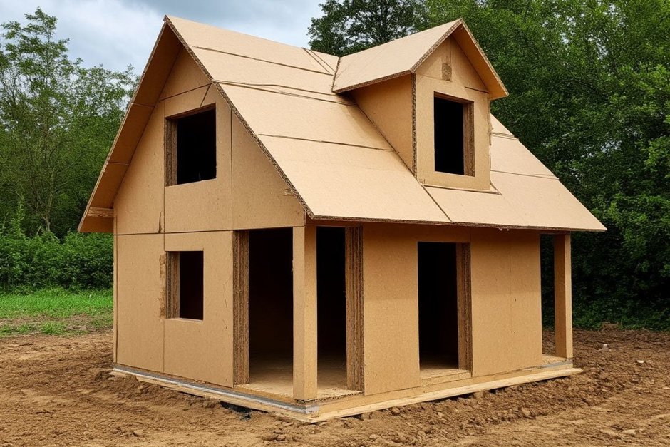 Его производство и технология использования уменьшают выбросы в атмосферу на 25%, по сравнению с использованием бетона в строительстве. Затраты при этом падают на треть. Представьте себе: транспортировать на стройплощадку надо только картон. Остальное: землю и воду — можно будет брать прямо на месте. На площадке будет сделана почвенно-водная смесь, ее будут закладывать в картонную опалубку — вот и стены. Их прочность достаточна для того, чтобы строить одно-трехэтажные дома.