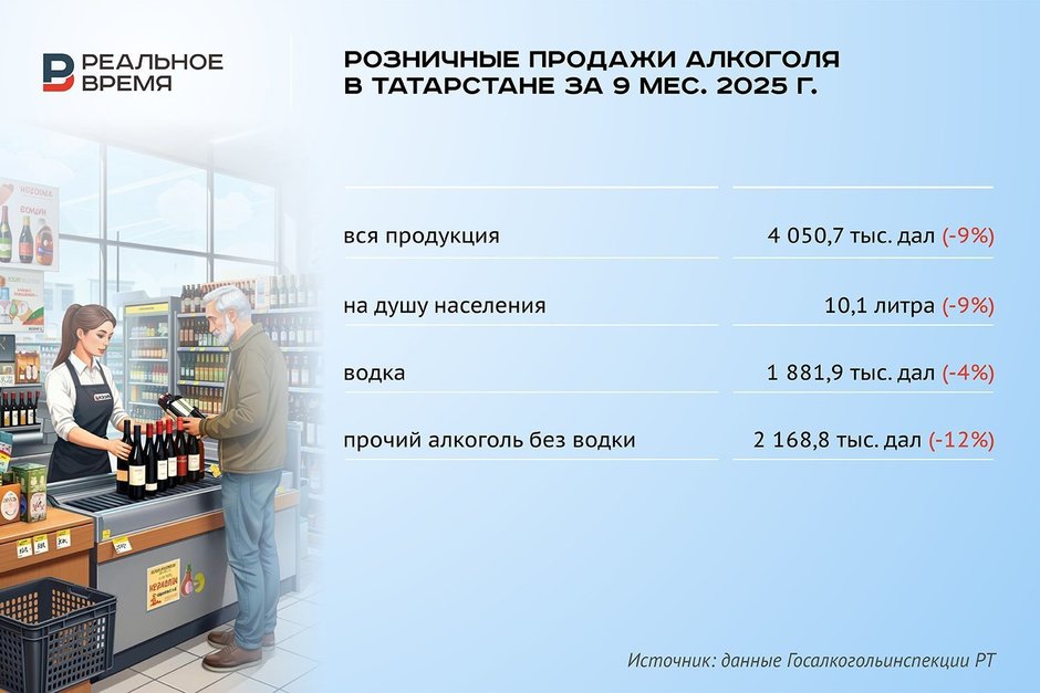 — Рынок алкоголя в России, так же как и в Татарстане, демонстрирует сложную динамику, отражая влияние экономических и социальных факторов последних лет. Ужесточение фискальной политики в алкогольной отрасли в начале 2025 года, включающее повышение ставок акцизов, рост минимальных розничных цен и увеличение пошлин на импорт, привело к снижению продаж алкоголя как в целом по России, так и в республике. Кроме того, наблюдается общая тенденция растущего внимания потребителей к здоровому образу жизни, — привел общие тенденции на рынке собеседник издания.