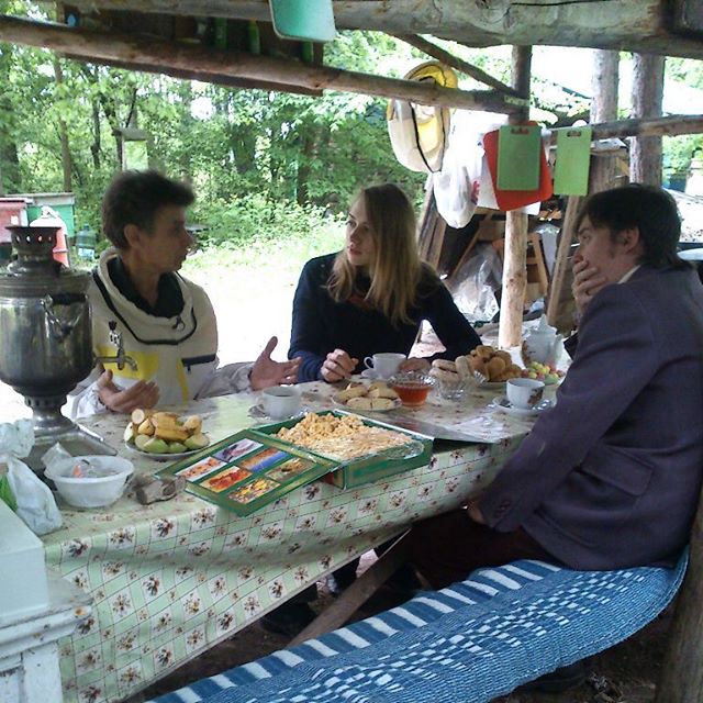 Мы тоже столкнулись с проблемой отсутствия кинематографичных достопримечательностей в Закамье, поэтому решили завершить день после посещения прекрасного медного рудника в гостях у семьи Каримовых — пасечников из Челнов, которые в селе Мальцево делают прекрасный мед. Халит Каримов упрашивал нас: приезжайте в июне, когда будут цвести поля (он засевает их сам лучшими медоносными травами). Но экспедиция есть экспедиция. Поля к нашему приезду еще не цвели, зато пчелы успели собрать майский мед. Обычно пасечники не успевают его собрать. Но в этот раз удалось. Честно скажем, за всю поездку наша съемочная группа, наверное, ничего вкуснее не ела!