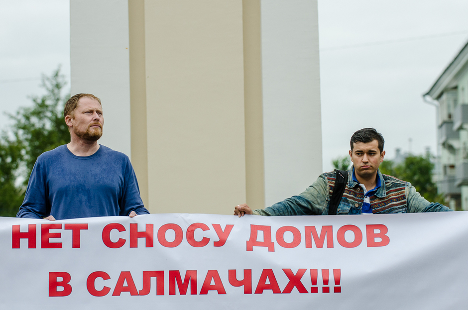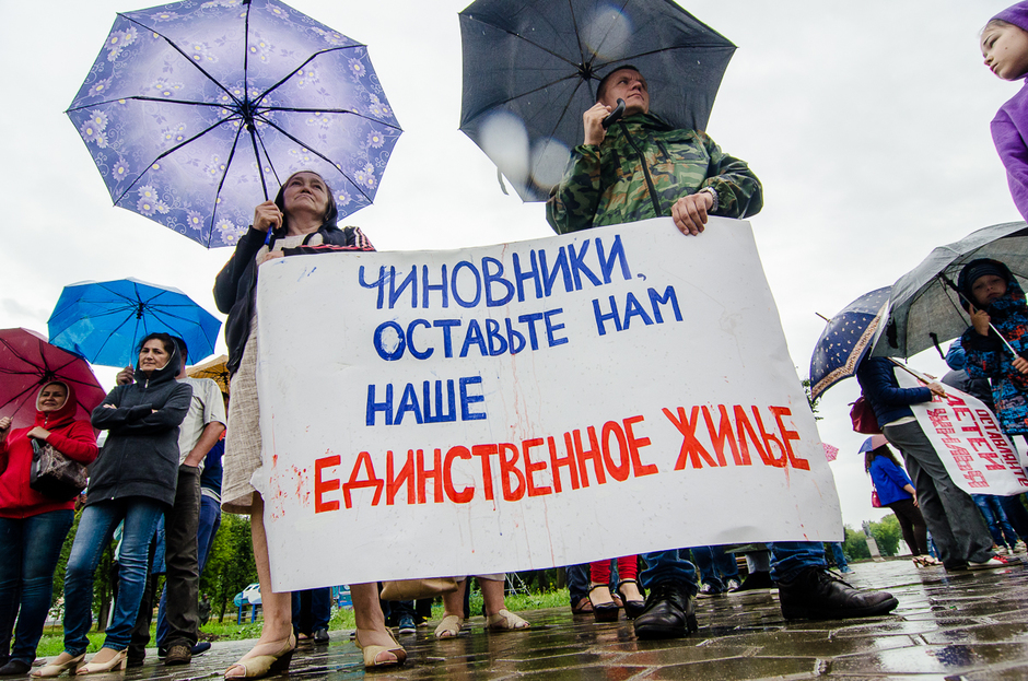 — Участники митинга требуют решения по проблеме сноса 223 домов в поселке Салмачи города Казани. Через территорию, где сейчас располагается поселок Салмачи, с 1963 по 1976 года были проложены три магистральных газопровода. В 2001 году территория поселка Салмачи была присоединена к городу Казани. Большинство жителей поселка Салмачи с уже существующими, к тому времени, дачными постройками на их участках воспользовались процедурой дачной амнистии, предусмотренной Федеральным законом №93, и зарегистрировали права собственности на соответствующие земельные участки и дома. В 2011 году Ростехнадзор в лице Приволжского управления провел проверку газопроводов на предмет соблюдения магистральных расстояний от газопровода до жилых строений и по результатам проверки вынес предписания «Газпром Трансгаз Казань» об устранении нарушений. В 2015 году «Газпром Трансгаз Казань» обратился в Приволжский и Советский районные суды города Казани, которые вынесли решение о сносе строений на вышеуказанных участках, как находящихся в охранной зоне трубопроводов.