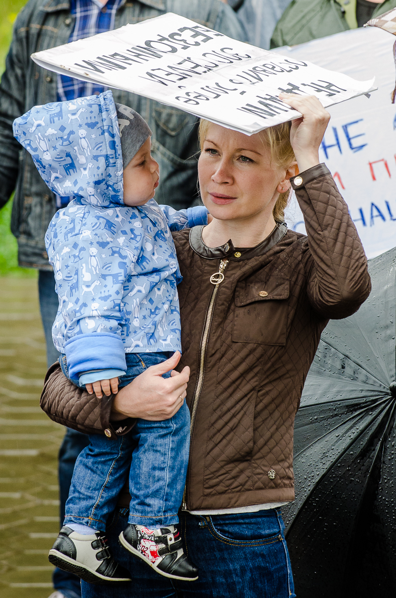 Среди присутствующих на митинге оказалось множество молодых семей с маленькими детьми: ребята постарше сами держали плакаты типа «Не сносите наши дома», а помладше просто стояли в своих маленьких дождевиках или сидели на руках у родителей. Традиционно проблемные вопросы привлекают и активистов оппозиционных партий. На этот раз на митинге присутствовали представители партии «Парнас».