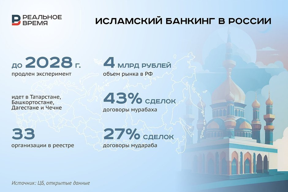 В России исламский банкинг в качестве пилота реализуется третий год подряд на территории четырех регионов: в Татарстане, Башкортостане, Чечне и Дагестане. Сейчас эксперимент в начале второго этапа развития, а в специальном реестре, который ведет ЦБ, зарегистрированы 33 организации, включая ряд крупных банков.