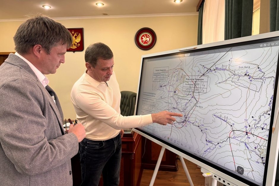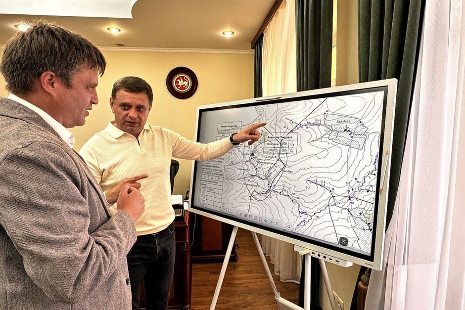 К беседе с журналистом «Реального времени» о том, как и откуда в дома жителей Дрожжановского района пришла вода, Александр Шадриков подготовился основательно. Электронную доску в его кабинете украсила карта родников.