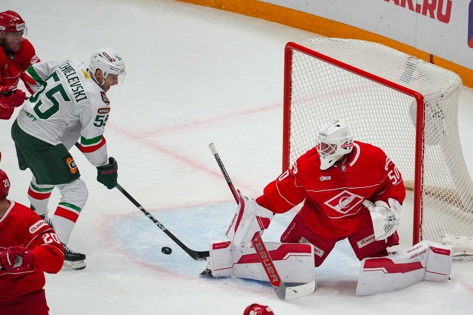 У «Спартака» тоже существуют серьезные проблемы с вратарской позицией. «Красно-белые» в преддверии матча с казанцами являлись худшей командой по количеству пропущенных шайб. Клуб долго искал усиления в эту линию. В итоге за час до старта игры с «Ак Барсом» москвичи сообщили о подписании голкипера из НХЛ Александра Георгиева. Объявление о трансфере могло подождать до завтрашнего дня, но в этом, видимо, и была идея — придать дополнительной мотивации команде.