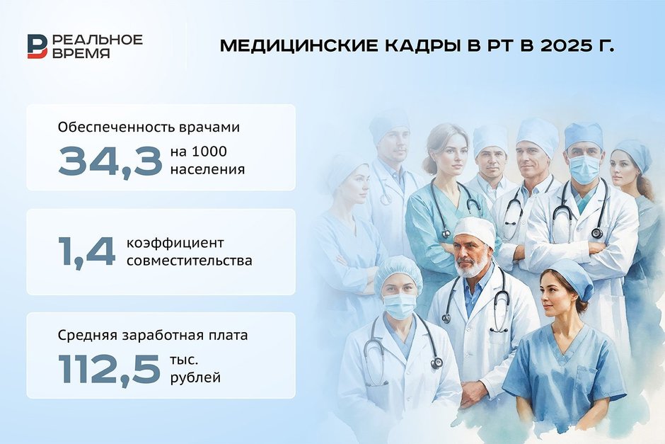 По данным Минздрава на 31 октября 2025 года, обеспеченность врачами в республике составляла 34,3 на 10 тыс. населения, коэффициент совместительства при этом составлял 1,4, то есть в среднем каждый врач работает на полторы ставки, а средняя зарплата врача с учетом совместительства достигала 112,5 тыс. рублей. С начала года в медучреждения РТ поступили на работу 1201 врач и 1389 сотрудников среднего звена. Сколько за этот срок медработников уволилось, не сообщалось.