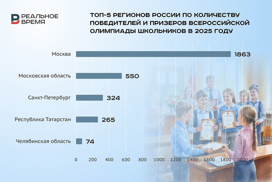 — Количество школьников из Татарстана, приглашенных на заключительный этап олимпиады, ежегодно увеличивается, оно выросло с 287 в 2017/2018 учебном году до 558 в 2024/2025 учебном году. Республика регулярно занимает лидирующие позиции в олимпиадном движении.